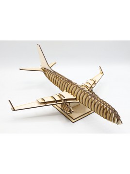Wooden model of the Boeing 737 aircraft for self-assembly. Laser cut from 3mm plywood. Model length: 35cm Wingspan: 33cm Height with stand: 16cm All models are cut to order. Delivery time up to 5 working days.