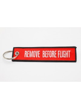 Fabric key ring double-sided embroidered, trimmed and finished with a metal wheel for hanging the keys.