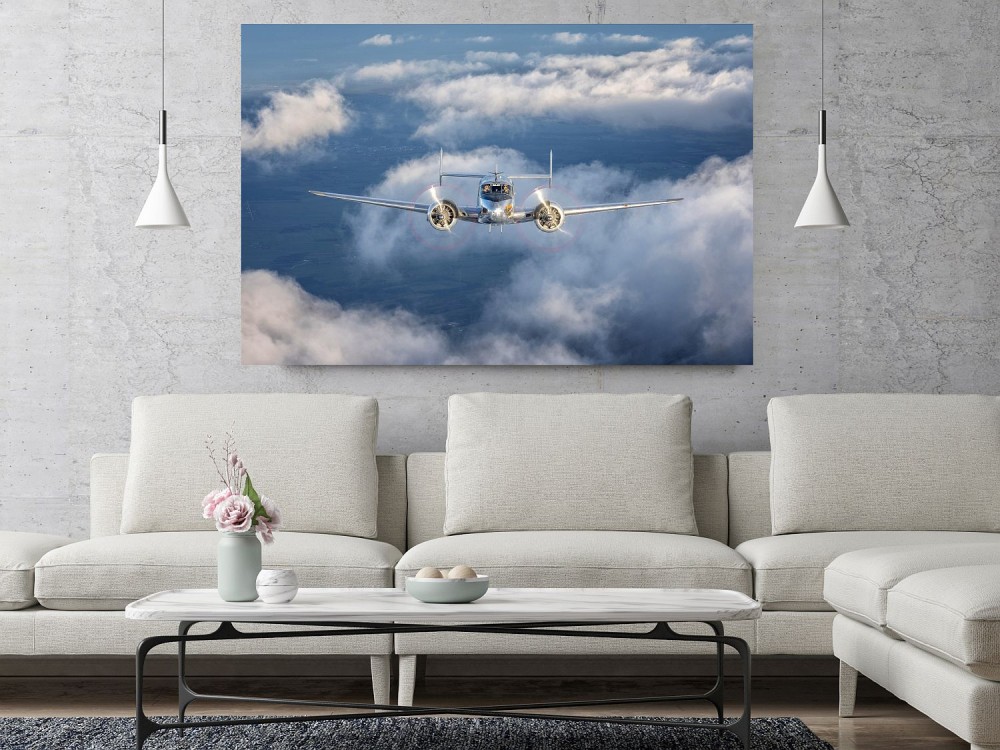 Beechcraft C-45H Expeditor painting printed on canvas and stretched on a wooden frame.