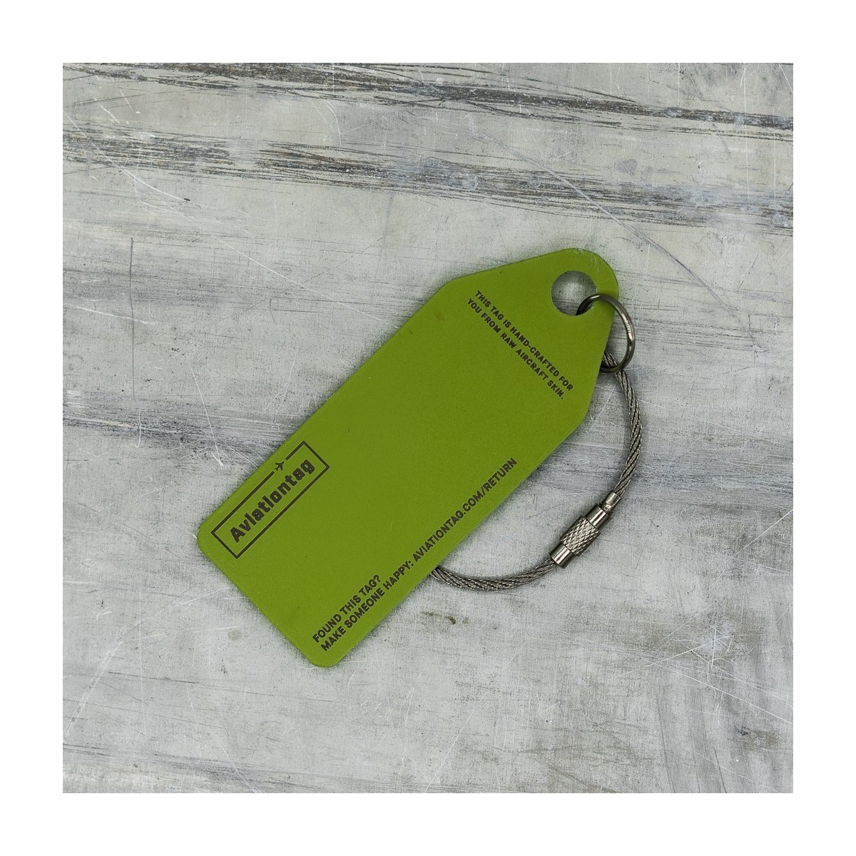 Note: Every tag is unique. Depending on the plane, tags may vary in terms of haptics, material thickness and colour. Small blemishes bear witness to the plane’s long history and are an authentic reminder of its glory days over the clouds. Small scratches, flaky paint and imperfections are totally normal and give our Aviationtags their unique charm – the charm of a vintage product crafted from upcycled materials. These quirks are not the result of the production process, they simply reflect the state of the aircraft material we use when it was extracted. The original aircraft paint of this edition is rather sensitive, so please take good care of your tag!