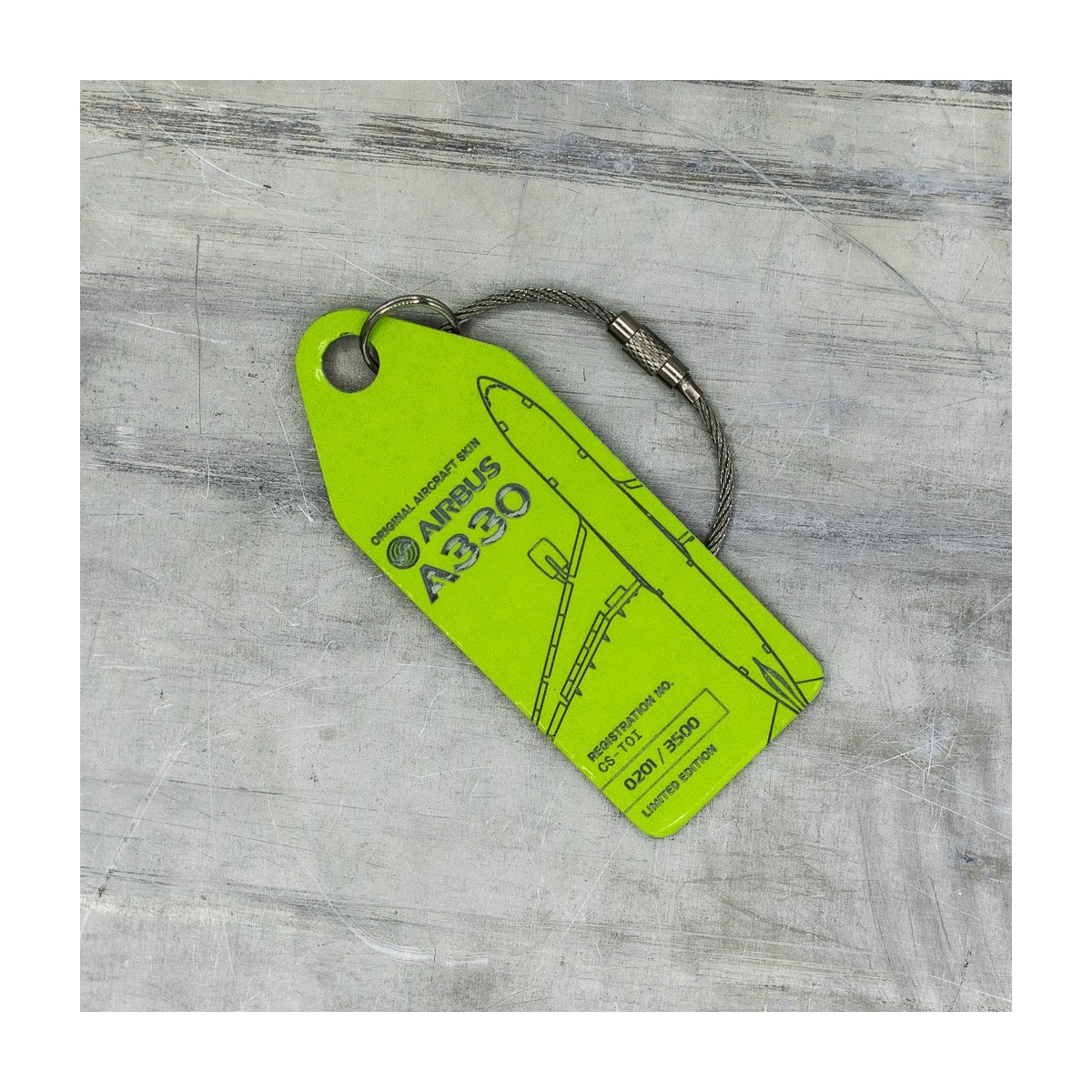 In 2019, the Airbus A330 was finally retired and then recycled in the Netherlands in 2020. We have been able to upcycle both logos and the internet address on the plane into our latest Aviationtag edition!