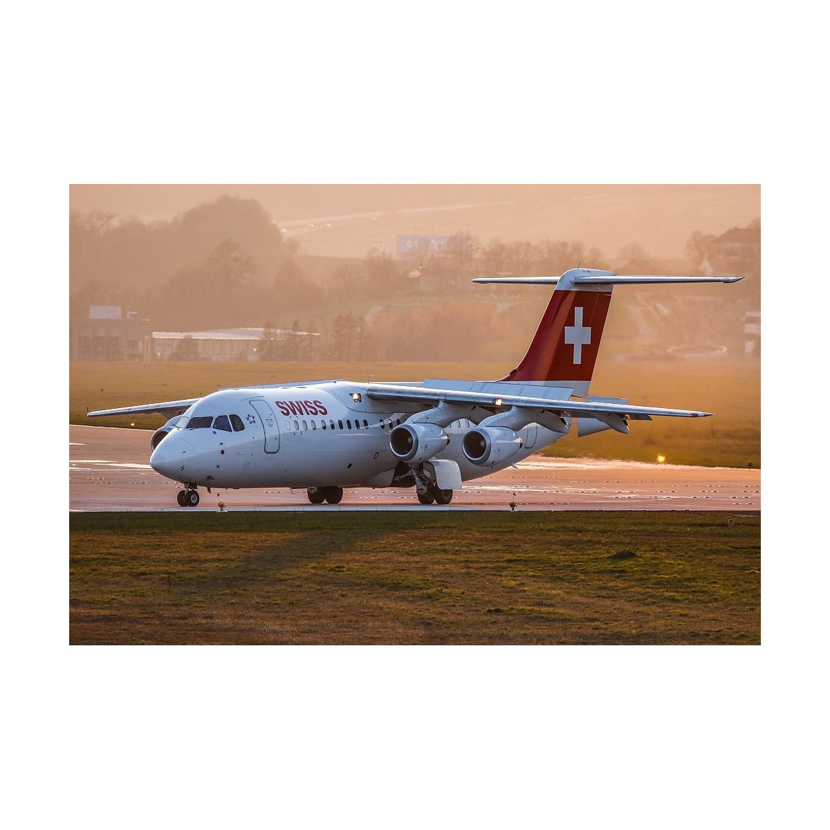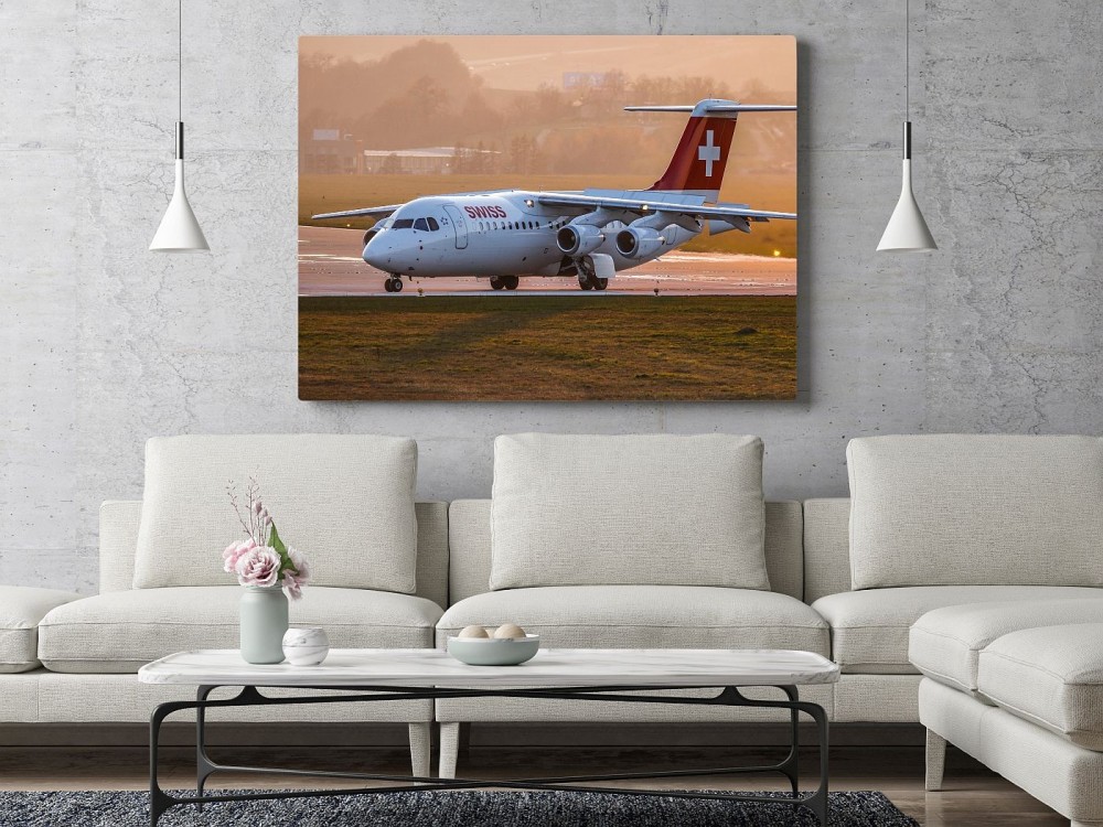 A painting by Swiss Airlines at Kraków Airport printed on canvas and stretched on a wooden frame.