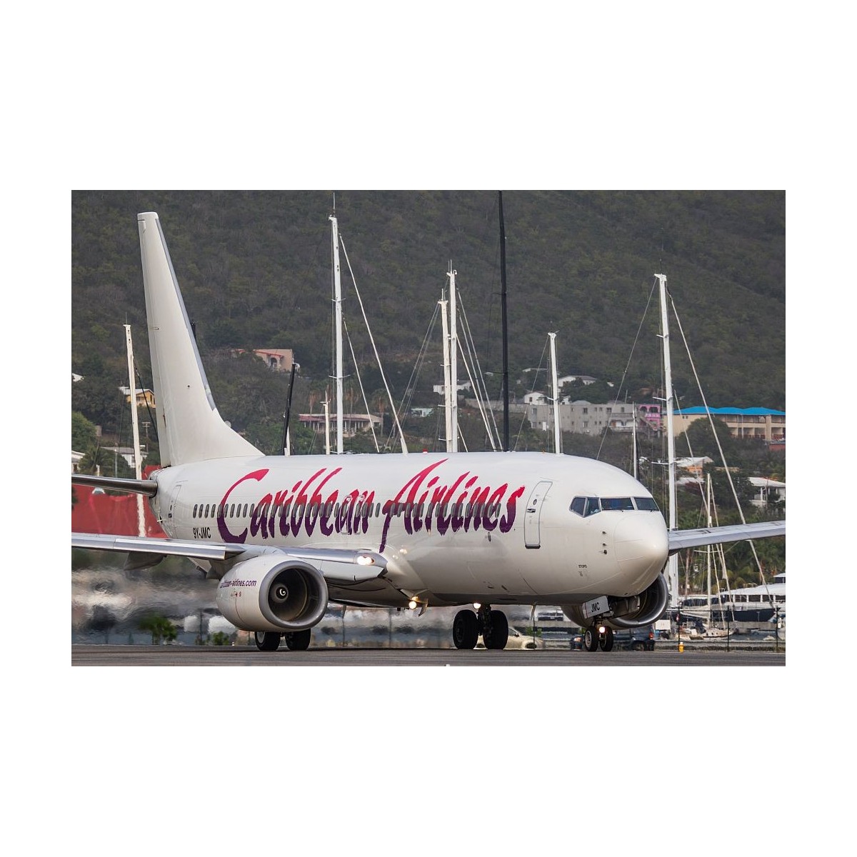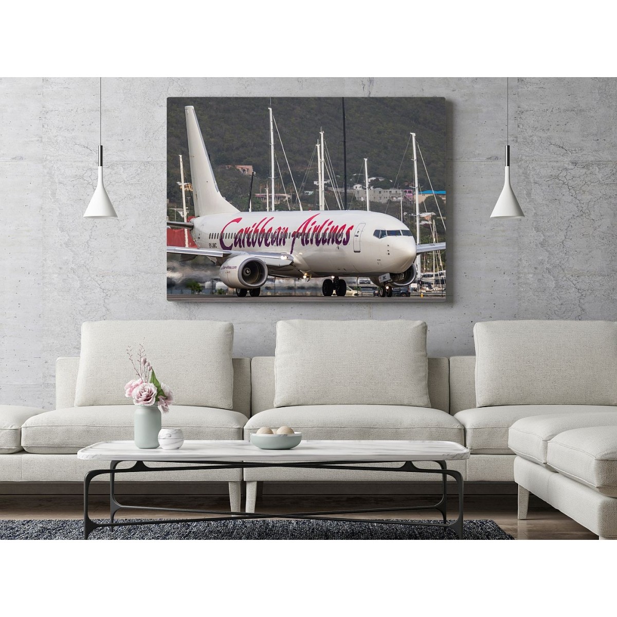 Caribbean Airlines painting on Saint Martin printed on canvas and stretched on a wooden frame.