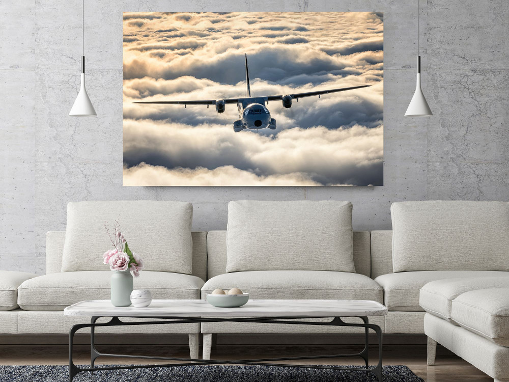 Image from C-130 Hercules printed on canvas and stretched on a wooden frame.