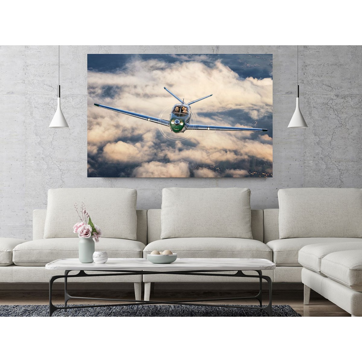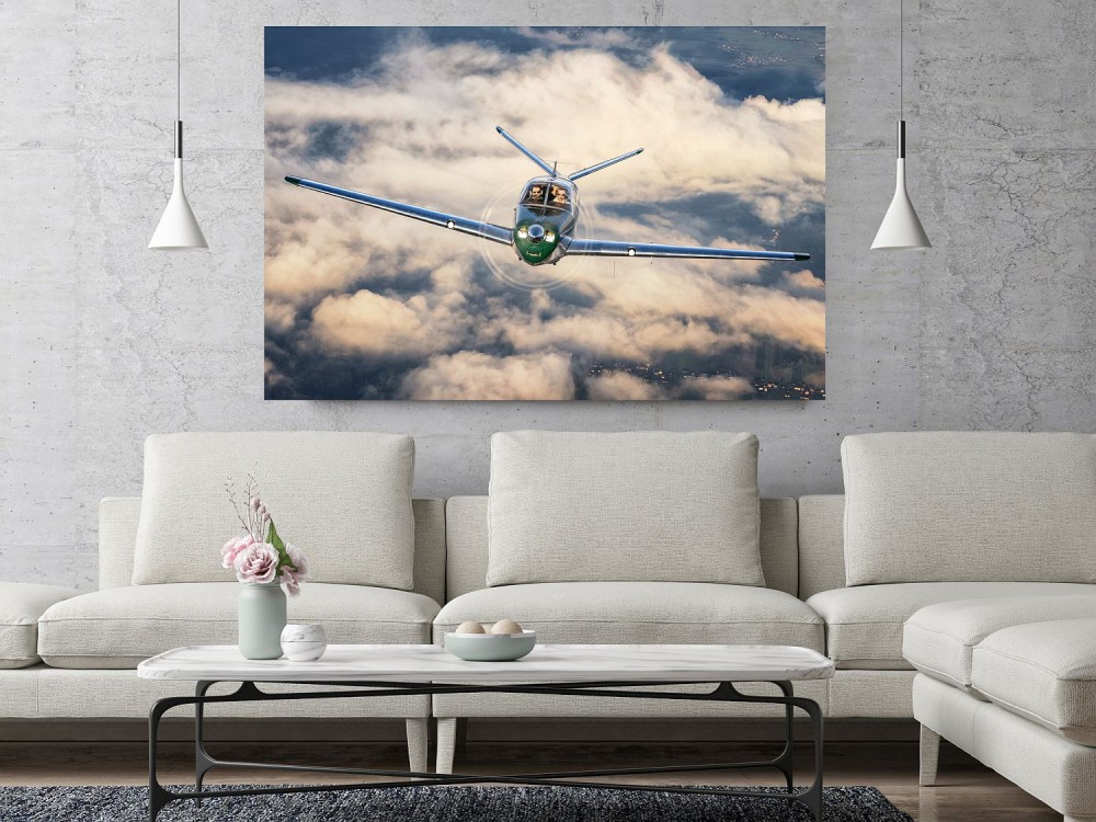 Painting from Beechcraft Bonanza printed on canvas and stretched on a wooden frame.