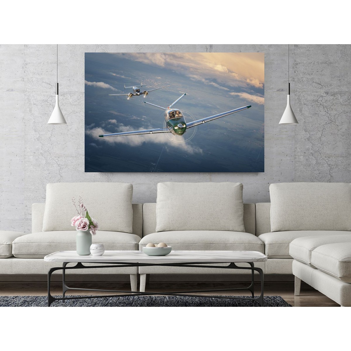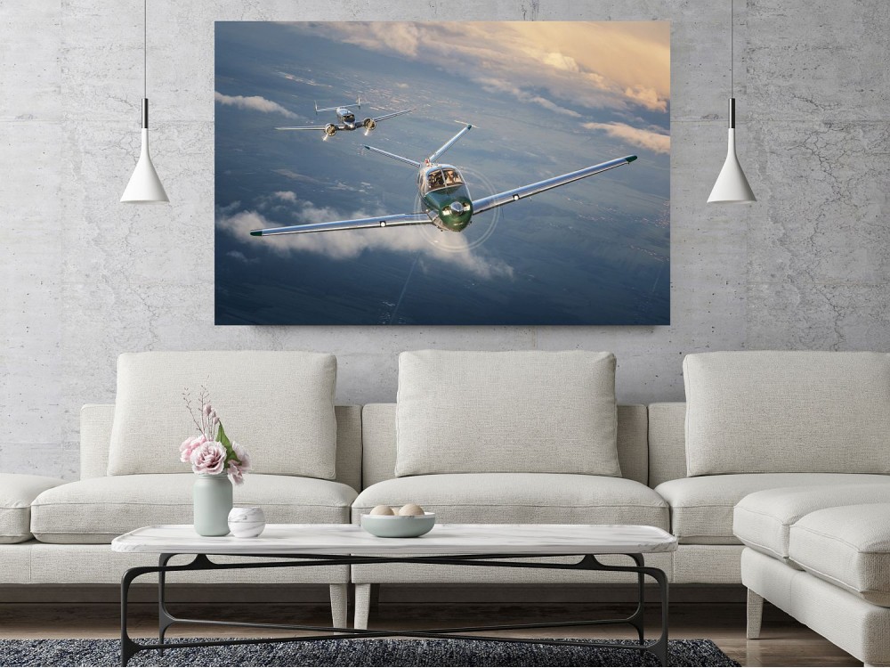 Painting from Beechcraft Bonanza printed on canvas and stretched on a wooden frame.