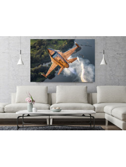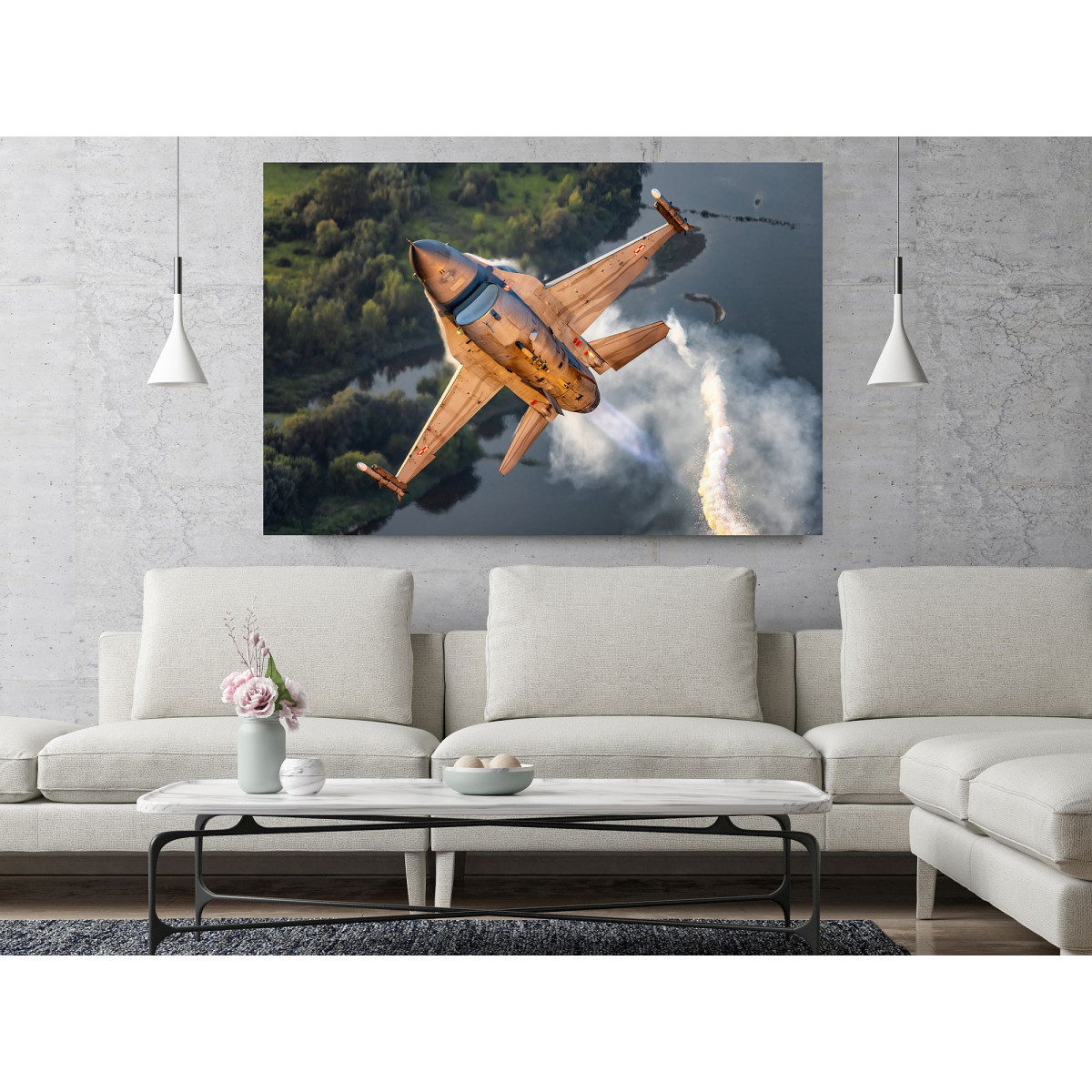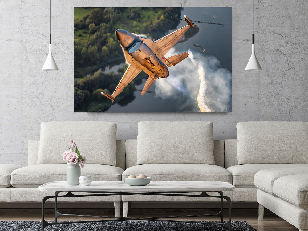 A painting of the F-16 Polish Air Force printed on canvas and stretched on a wooden frame.