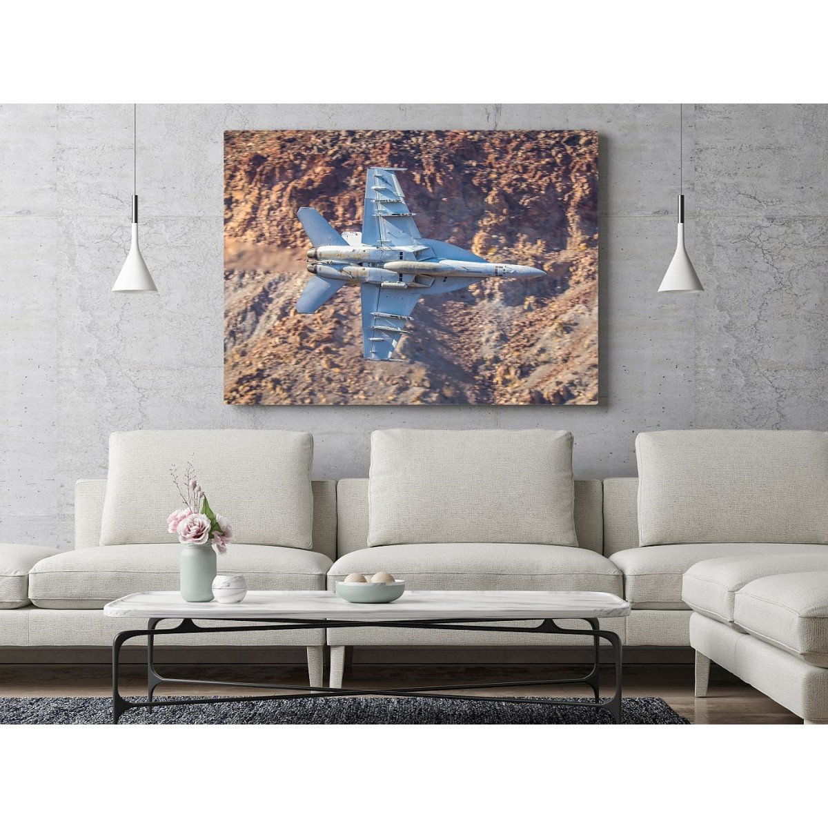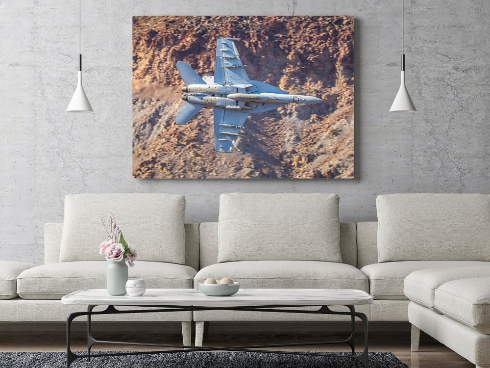 A painting of the F-18 in Rainbow Canyon printed on canvas and stretched on a wooden frame.