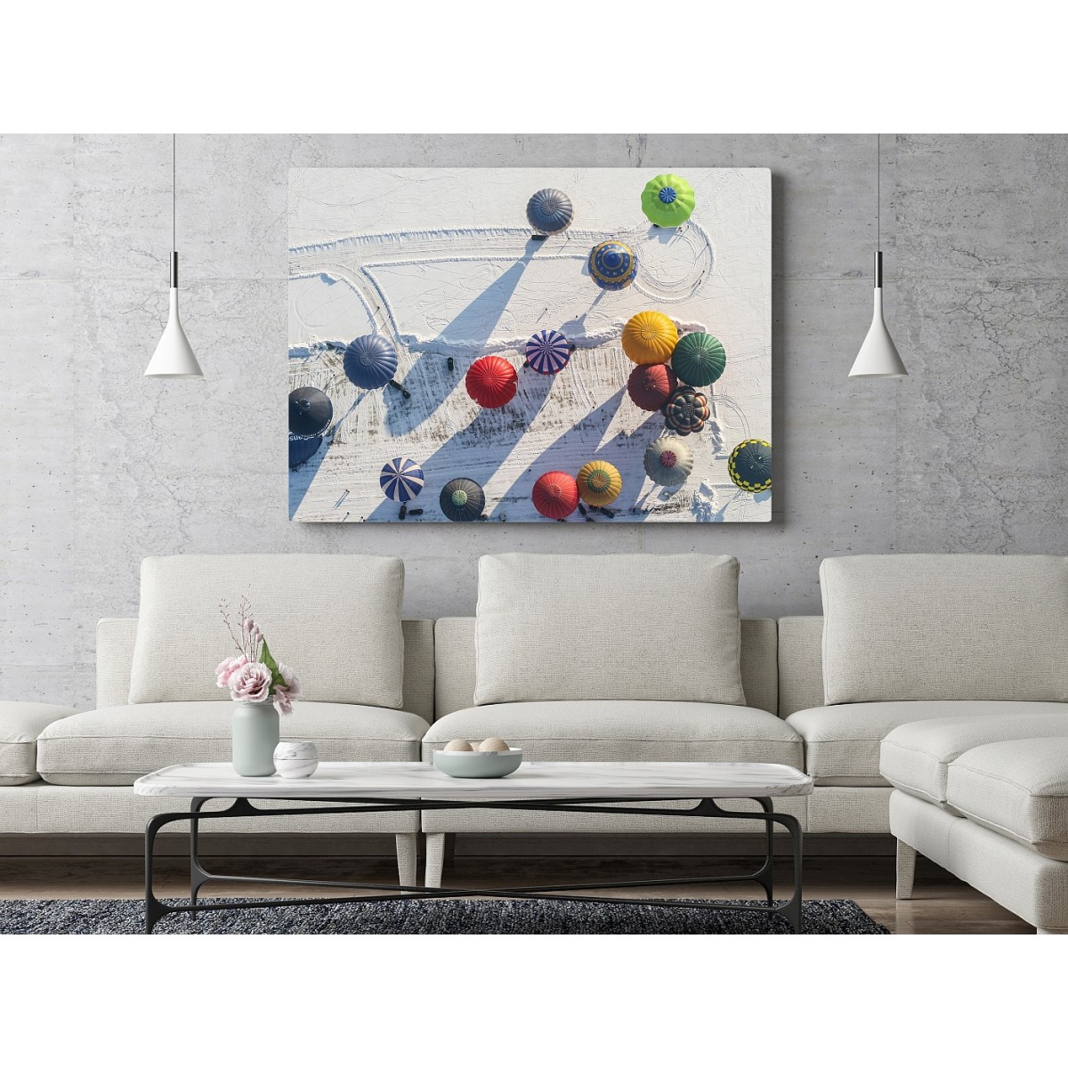Painting Balloons in the snow printed on canvas and stretched on a wooden frame.
