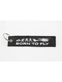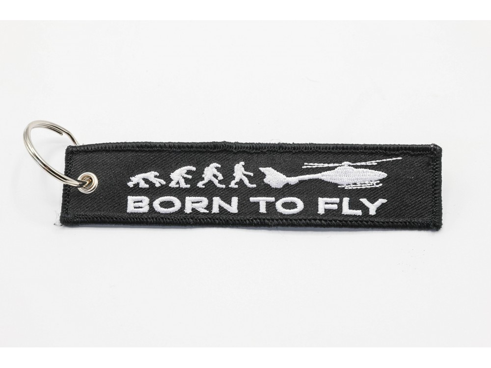 Fabric key ring double-sided embroidered, trimmed and finished with a metal wheel for hanging the keys.