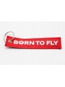 Fabric key ring double-sided embroidered, trimmed and finished with a metal wheel for hanging the keys.