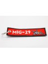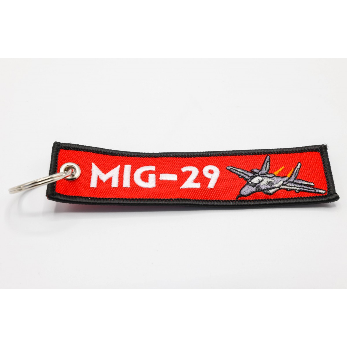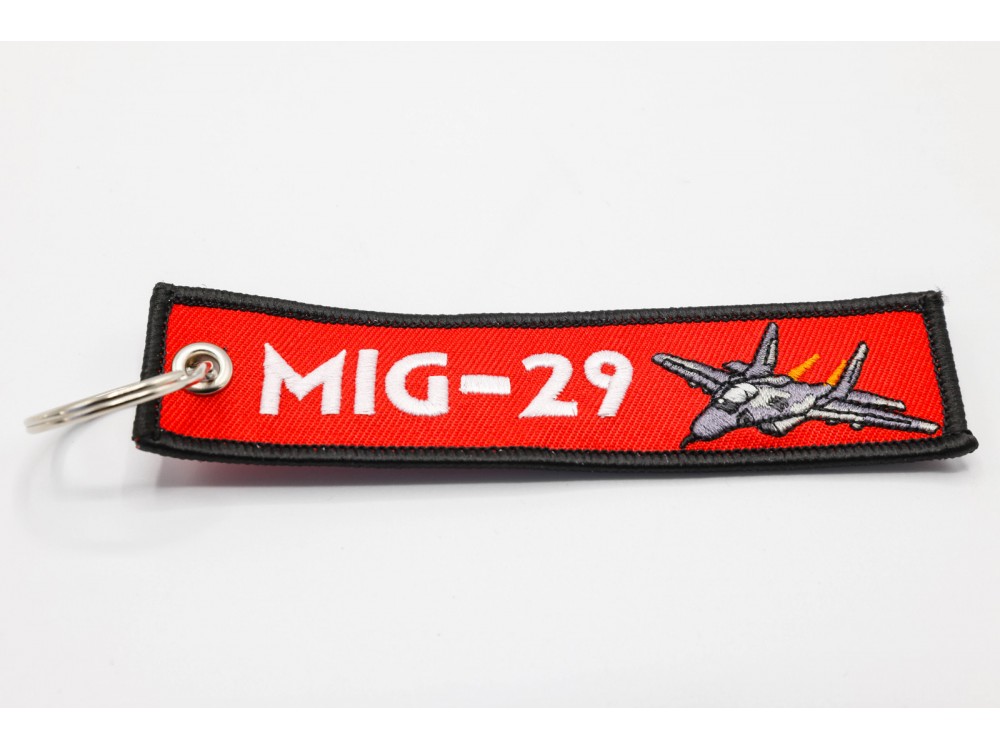 Fabric key ring double-sided embroidered, trimmed and finished with a metal wheel for hanging the keys.