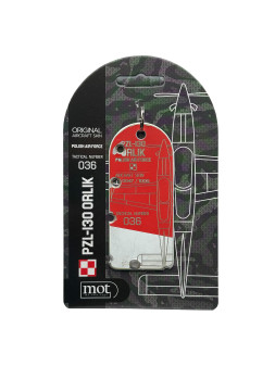 The PZL-130 TCI Orlik, tail number 036, was built in 1995. It served as a training aircraft until May 9, 2001, when, as a result of an improper landing (g-forces of +6 were recorded), the structure of the aircraft was seriously compromised. Number 036 was not written off but instead set aside for future repairs. Such an opportunity appeared only after more than a dozen years, when the decision was made to rebuild it into the PZL-130 TCII Advanced variant. Today, the PZL-130 Orlik with tail number 036 is still in service with the Air Force, and the keychains originate from its dismantled components.