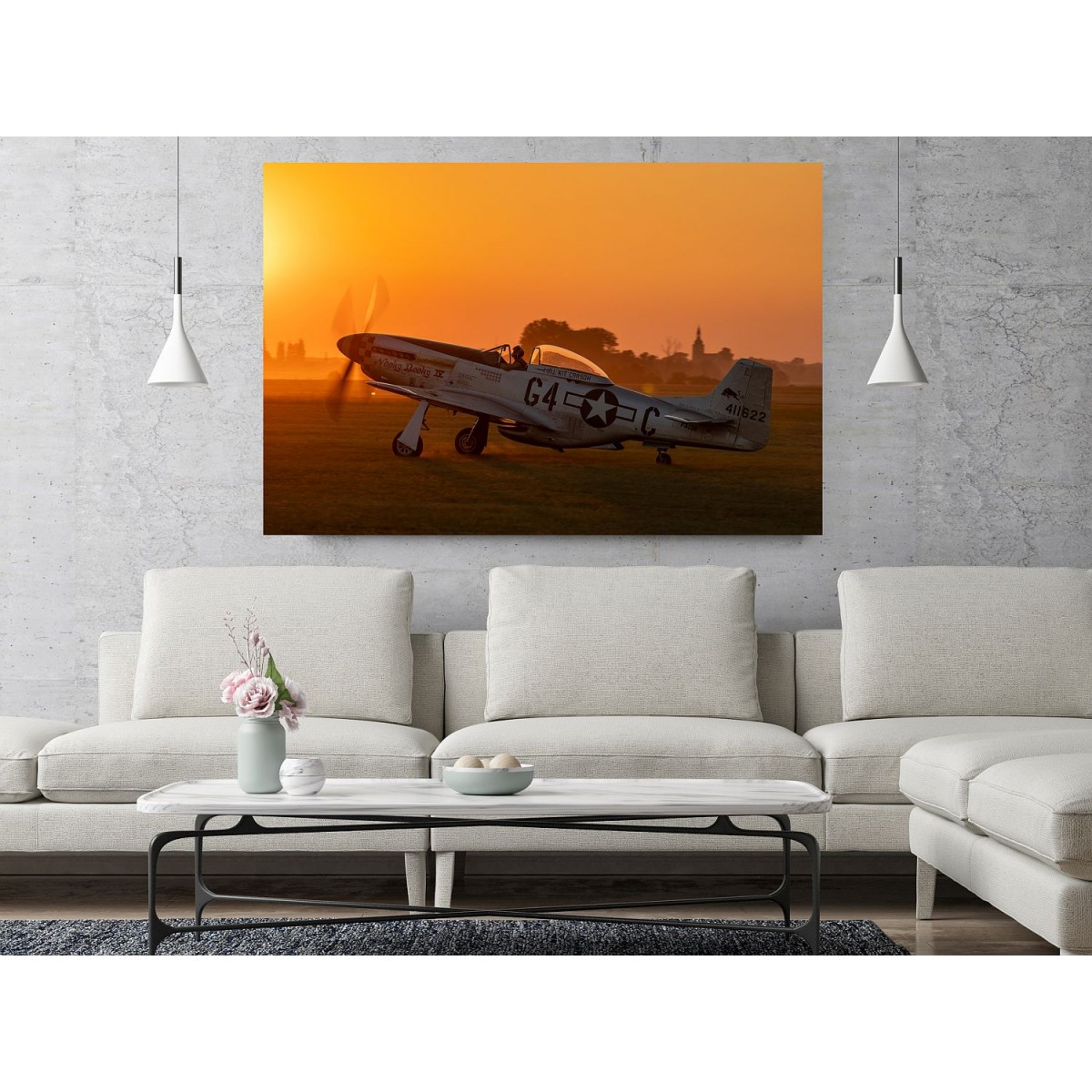 A painting from the P-51 Mustang printed on canvas and stretched on a wooden frame.