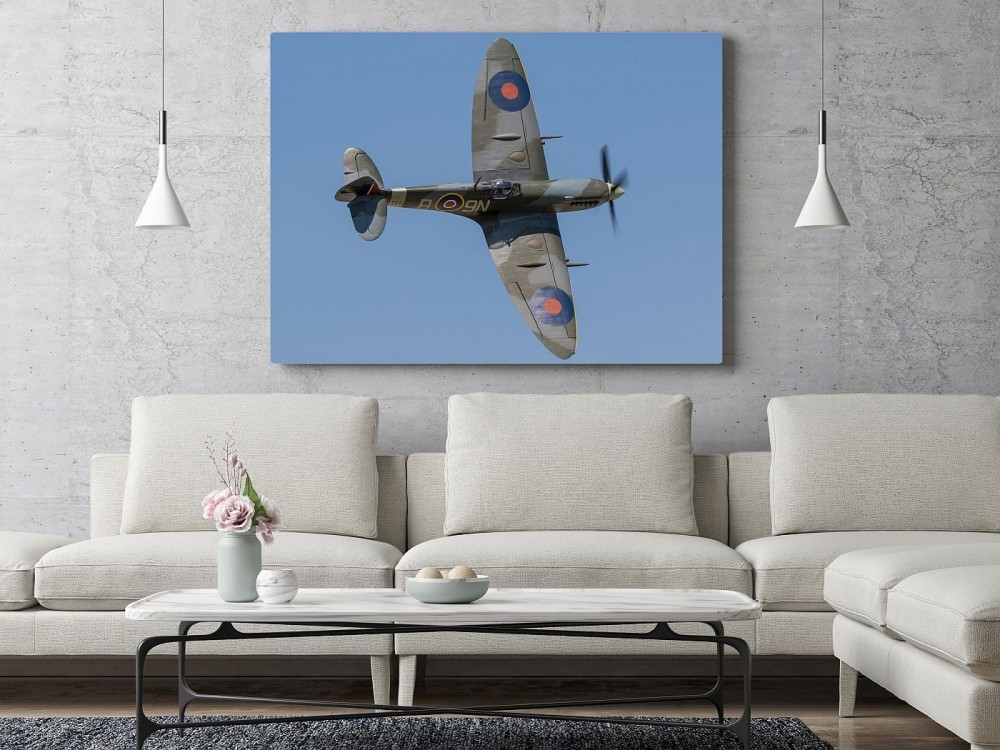Supermarine Spitfire painting printed on canvas and stretched on a wooden frame.