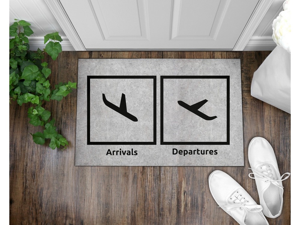 Door mat with aviation motif. Available in two sizes 90x60 cm or 75x45 cm. Sublimation printing resistant to abrasion. The bottom side is made of non-slip rubber.