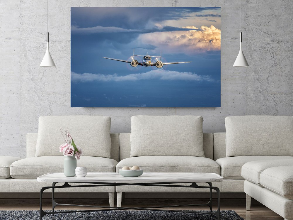 Obraz Beechcraft C-45H Expeditor wydrukowany na płótnie typu canvas i naciągnięty na drewnianą ramę.