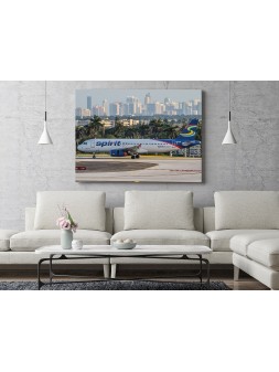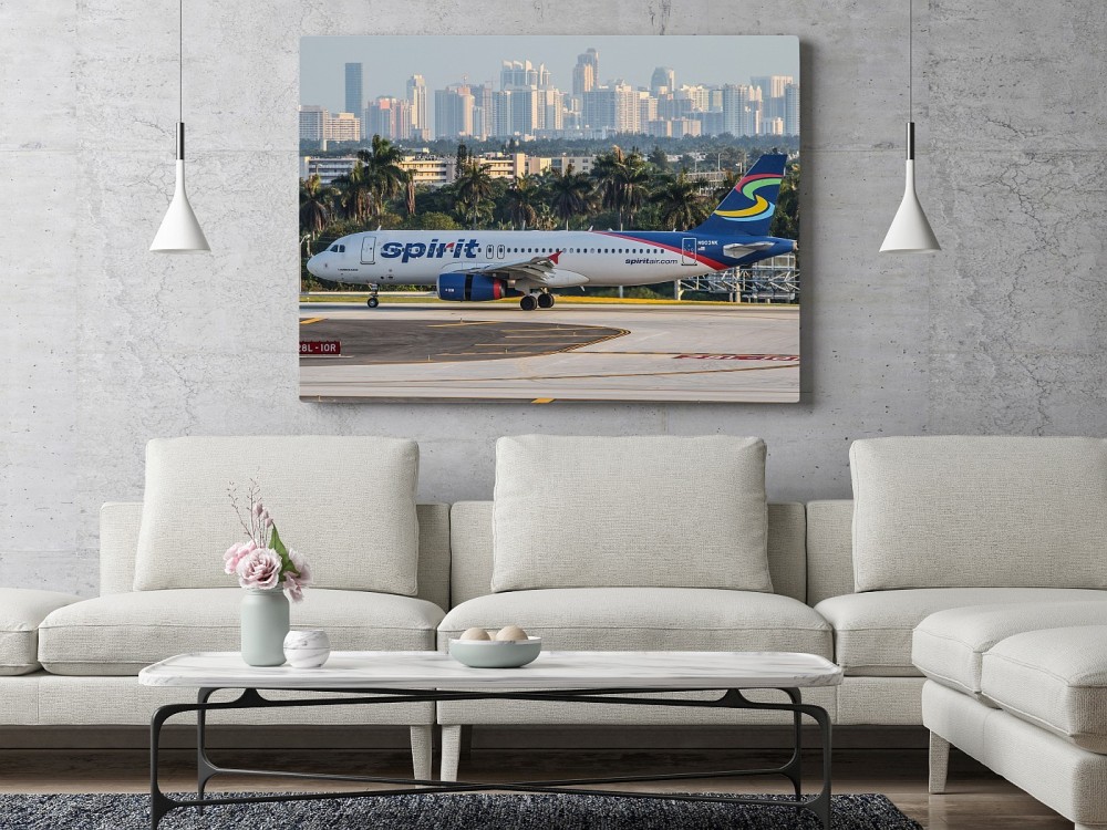 Obraz Spirit Airlines w Fort Lauderdale Airport wydrukowany na płótnie typu canvas i naciągnięty na drewnianą ramę.