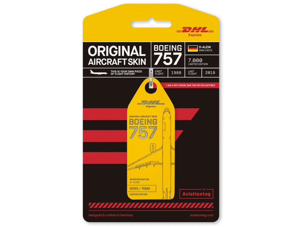 Dziś powraca jako limitowana edycja Aviationtag! Szczególną cechą tego wydania jest to, że po raz pierwszy Aviationtag nosi logo DHL Express! W naszej pracowni starannie wycinaliśmy, polerowaliśmy i grawerowaliśmy laserowo fragmenty poszycia samolotu, aby stworzyć te unikatowe kolekcjonerskie przedmioty. Każdy tag jest oznaczony typem samolotu, rejestracją oraz numerem edycji. Ograniczona do zaledwie 7000 egzemplarzy, ta edycja Aviationtag to prawdziwy „must-have” dla miłośników lotnictwa i logistyki!