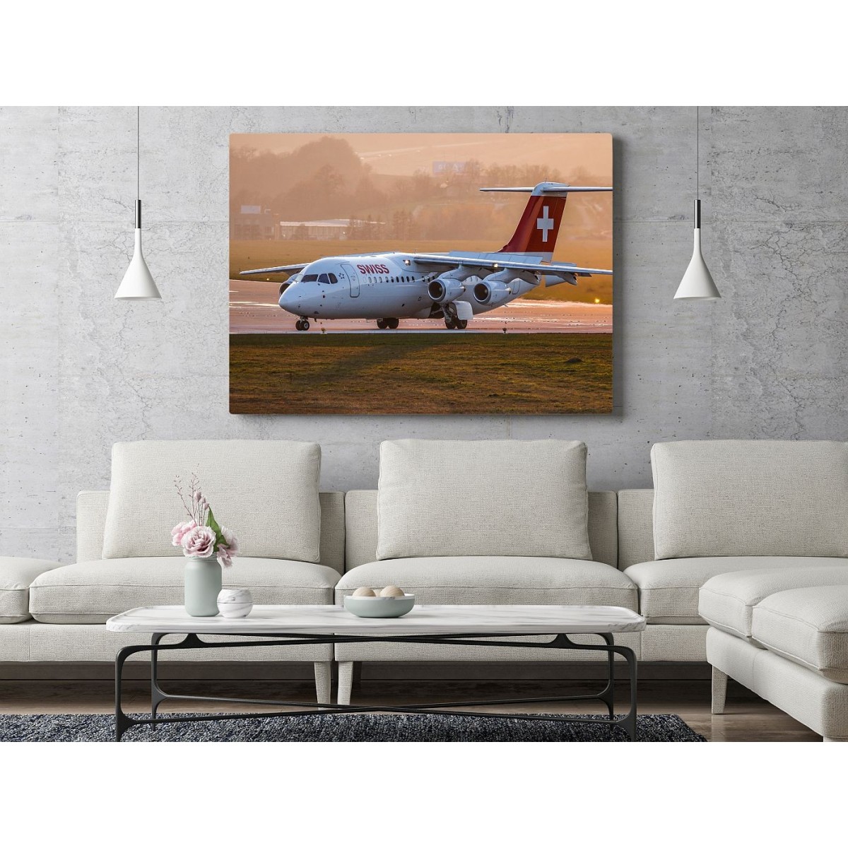 Obraz Swiss Airlines w Kraków Airport wydrukowany na płótnie typu canvas i naciągnięty na drewnianą ramę.
