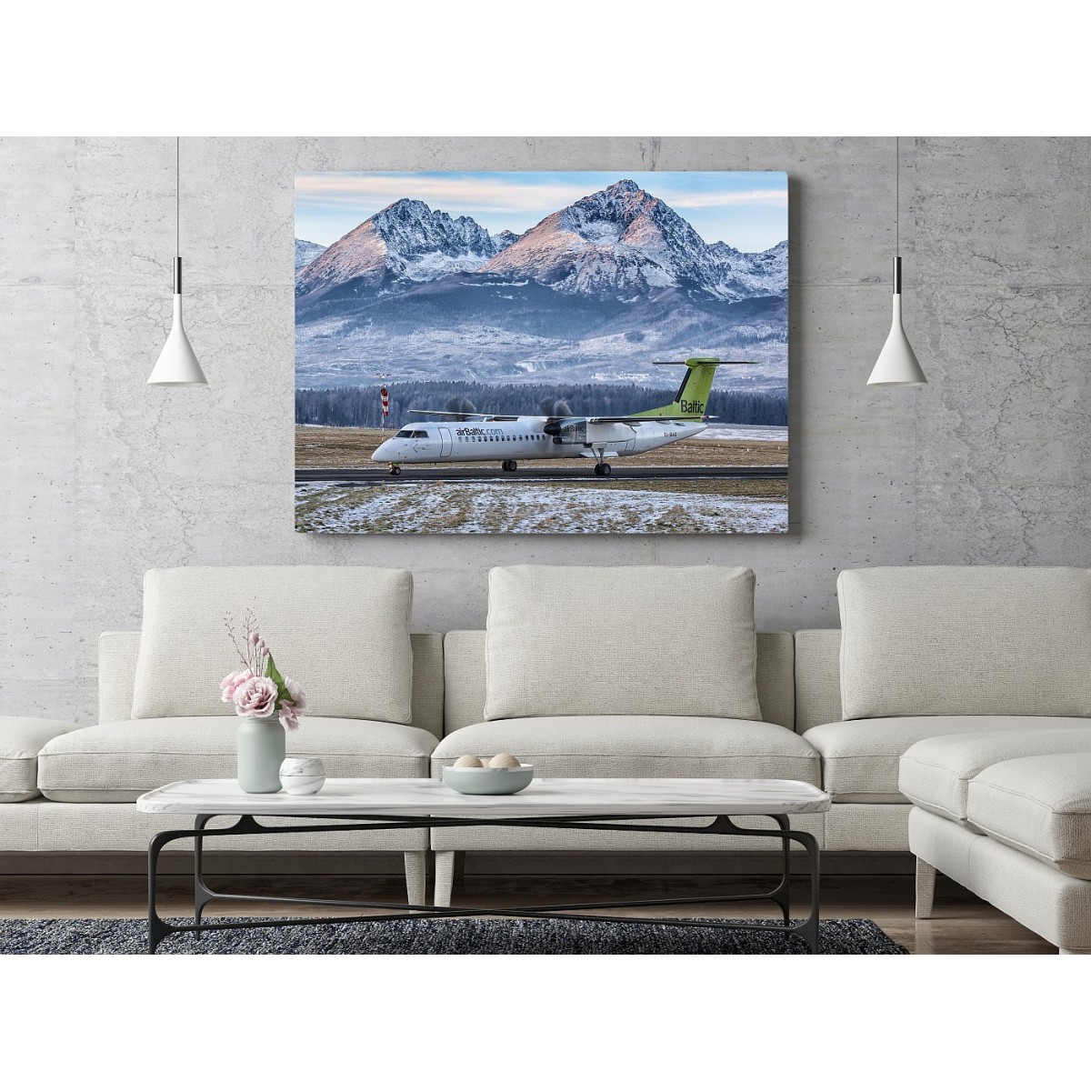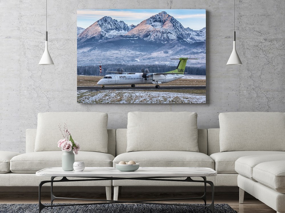 Obraz Air Baltic w Tatrach wydrukowany na płótnie typu canvas i naciągnięty na drewnianą ramę.