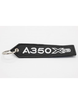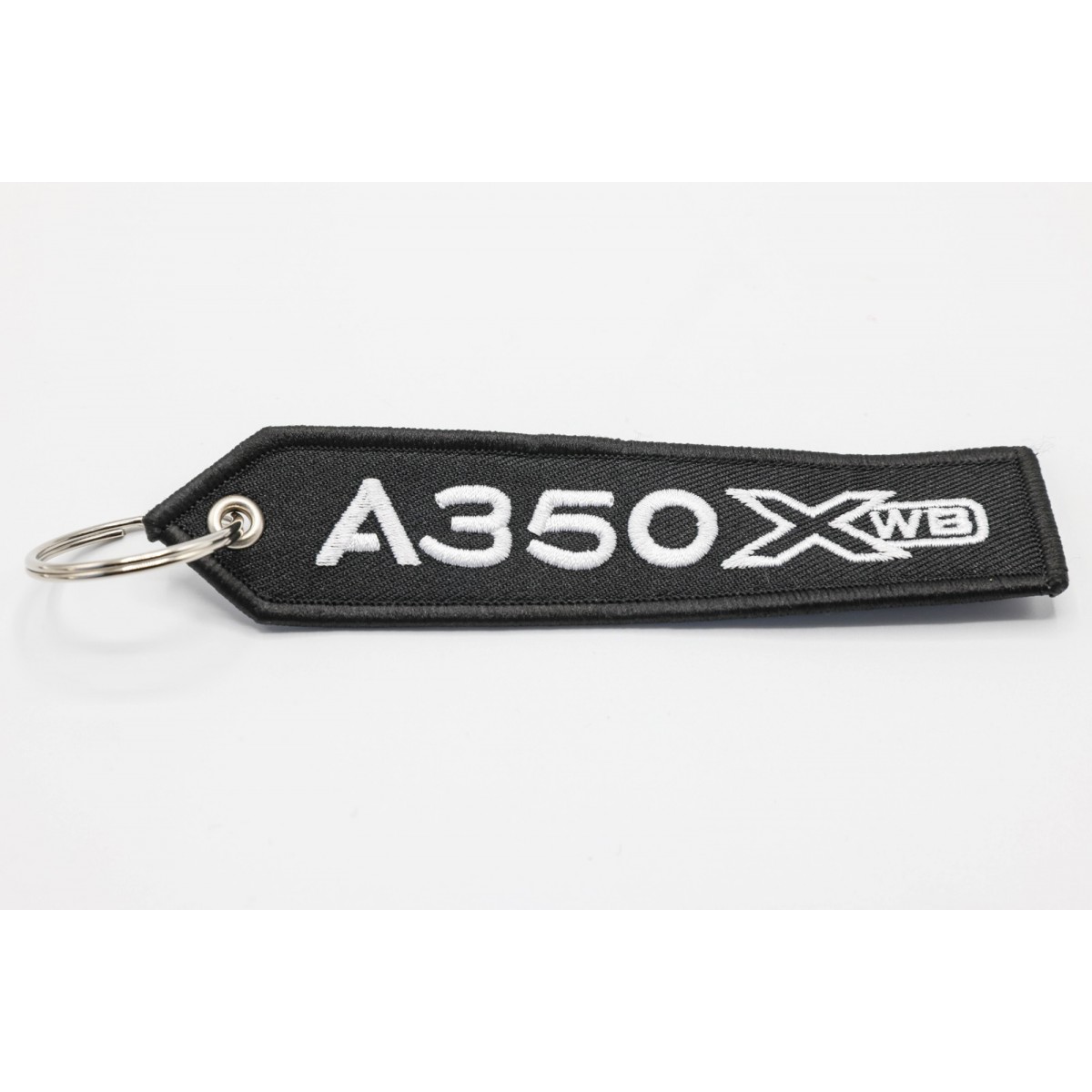Materiałowy brelok do kluczy dwustronnie haftowany, obszyty i zakończony metalowym kółkiem do zawieszenia kluczy.