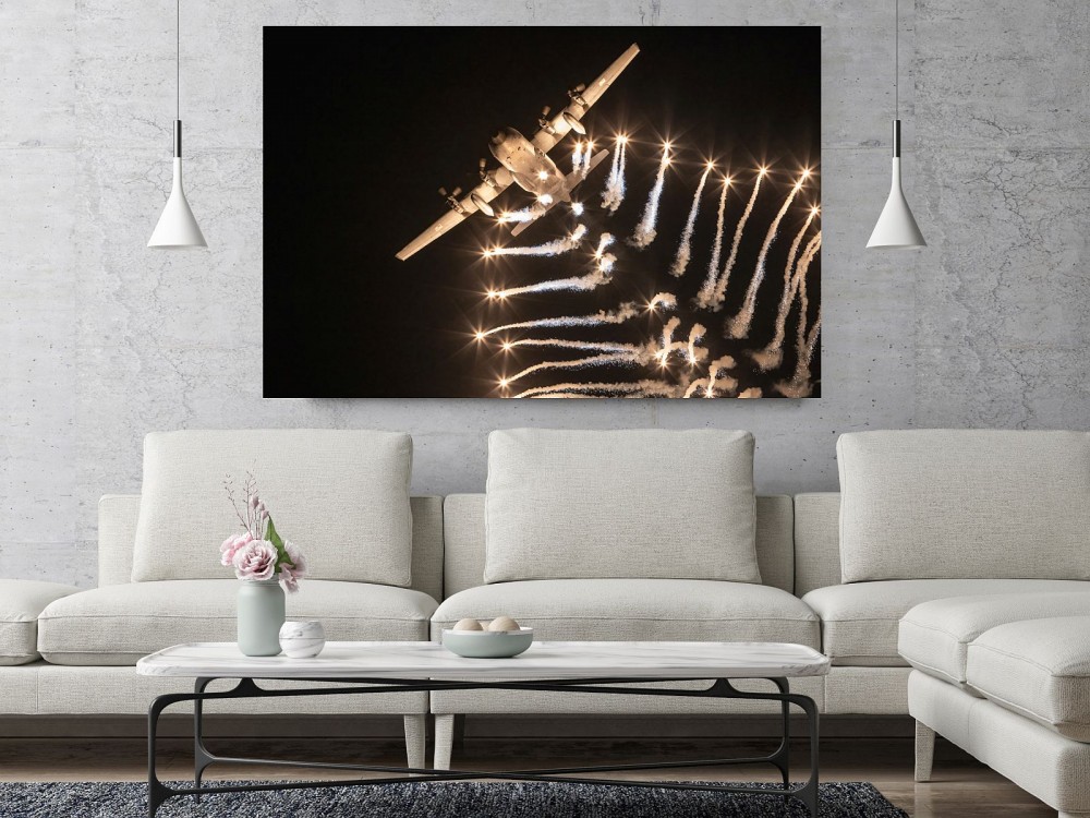 Obraz z C-130 Hercules wydrukowany na płótnie typu canvas i naciągnięty na drewnianą ramę.