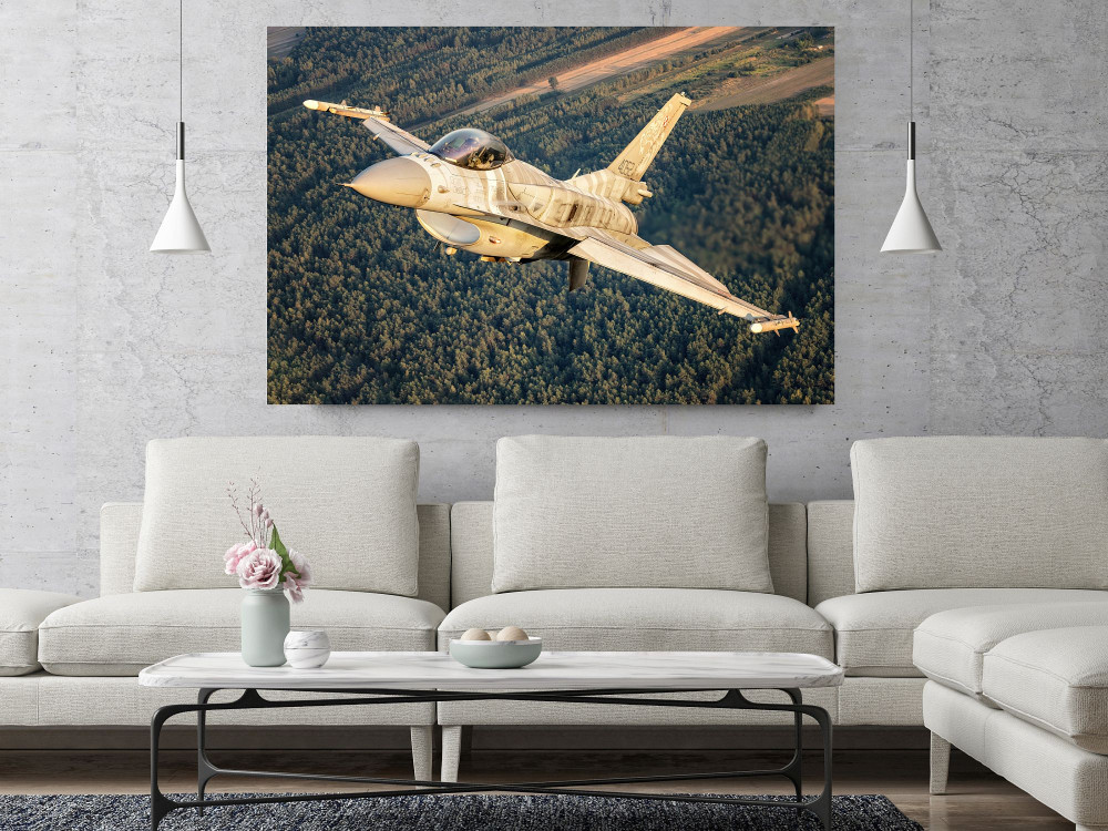 Obraz F-16 Siły Powietrzne RP wydrukowany na płótnie typu canvas i naciągnięty na drewnianą ramę.