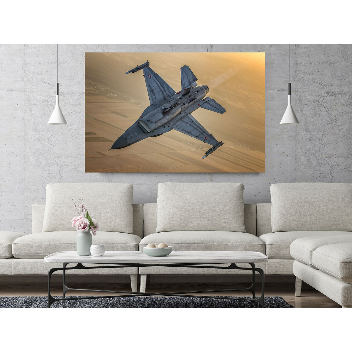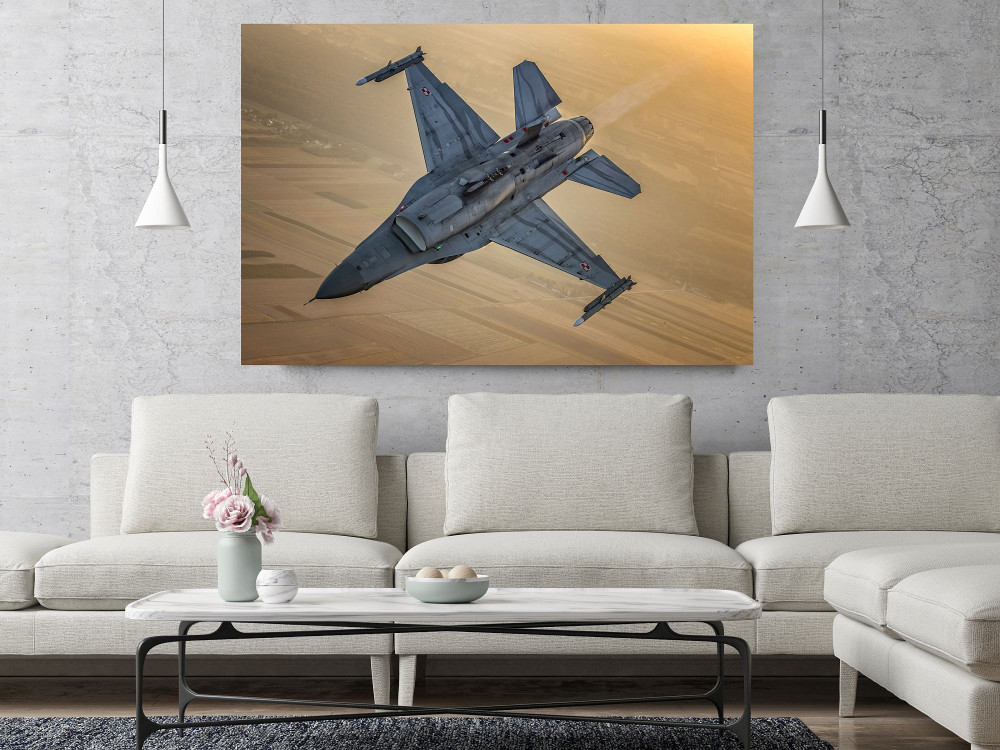 Obraz F-16 Siły Powietrzne RP wydrukowany na płótnie typu canvas i naciągnięty na drewnianą ramę.