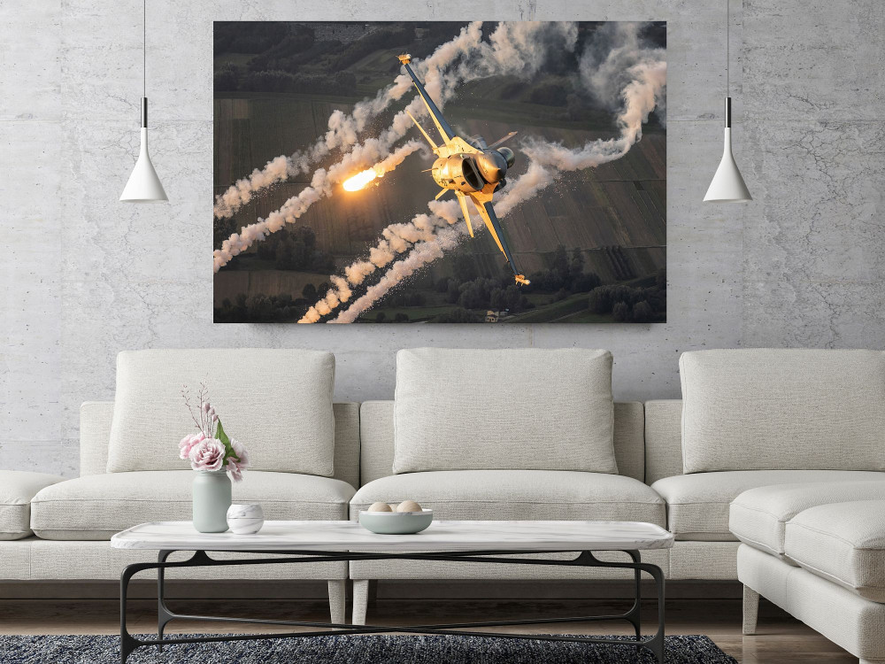 Obraz F-16 Siły Powietrzne RP wydrukowany na płótnie typu canvas i naciągnięty na drewnianą ramę.