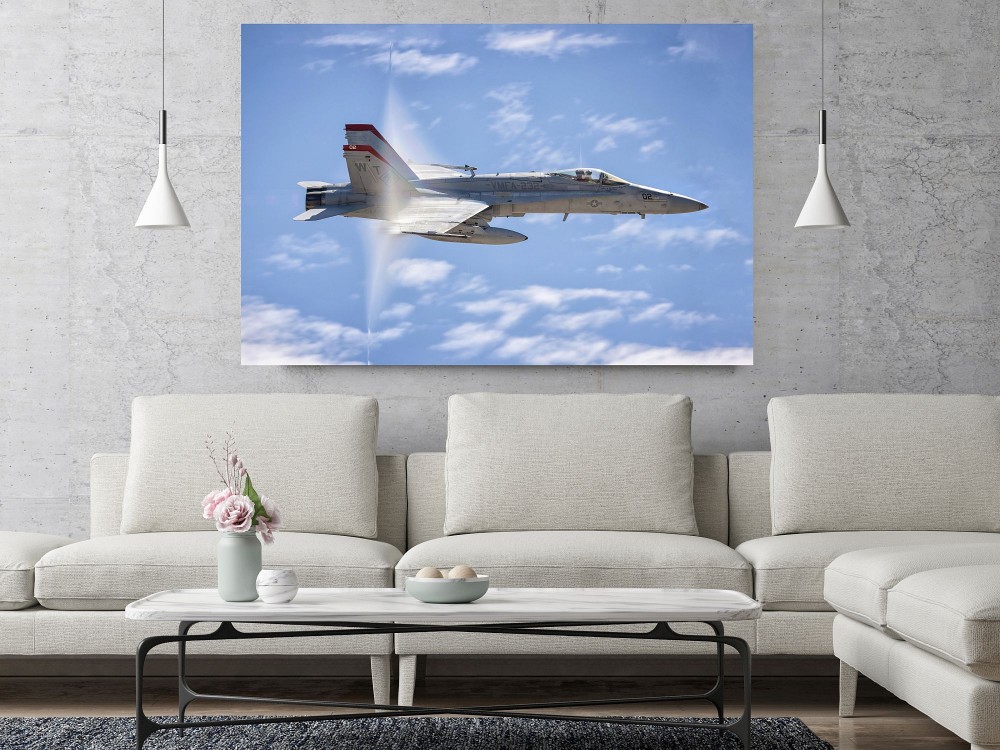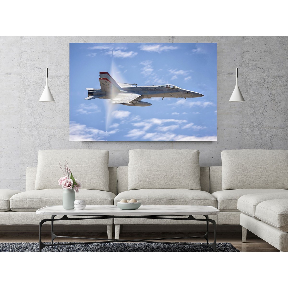 Obraz F-18 Hornet wydrukowany na płótnie typu canvas i naciągnięty na drewnianą ramę.