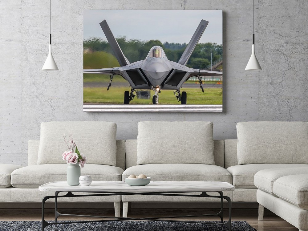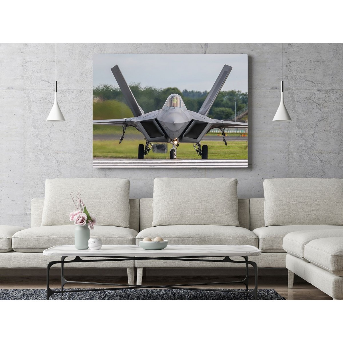 Obraz F-22 Raptor wydrukowany na płótnie typu canvas i naciągnięty na drewnianą ramę.
