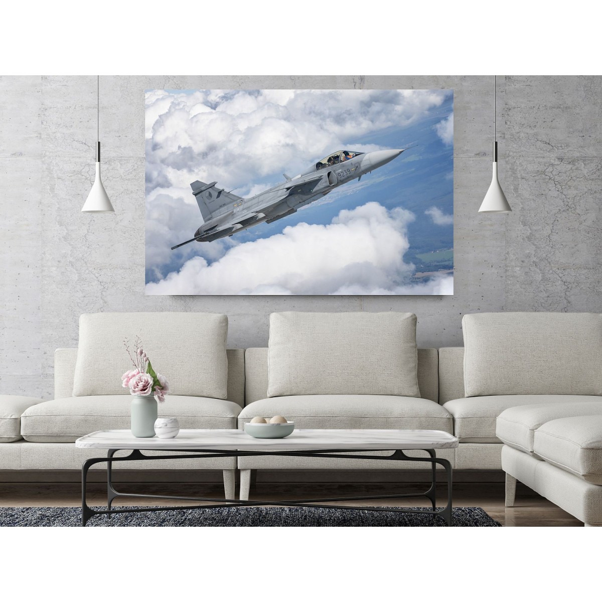 Obraz JAS-39 Gripen wydrukowany na płótnie typu canvas i naciągnięty na drewnianą ramę.