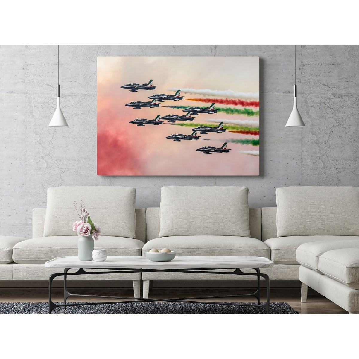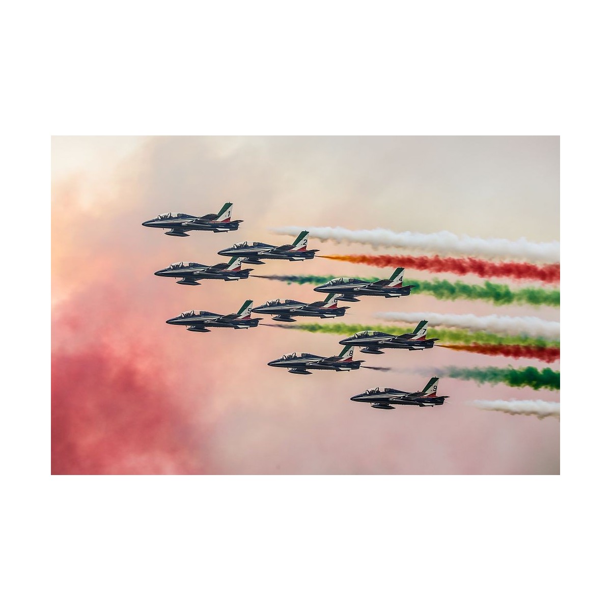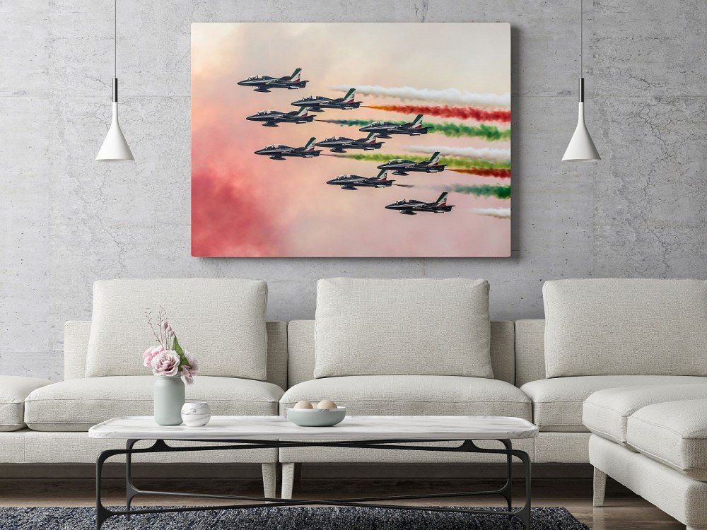 Obraz Frecce Tricolori wydrukowany na płótnie typu canvas i naciągnięty na drewnianą ramę.