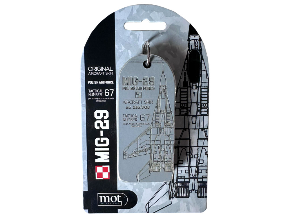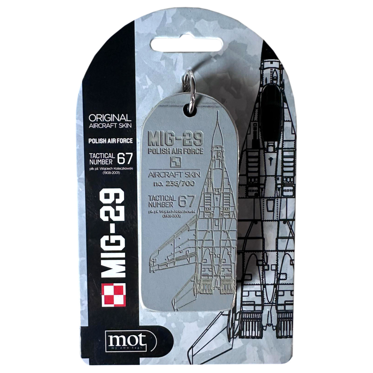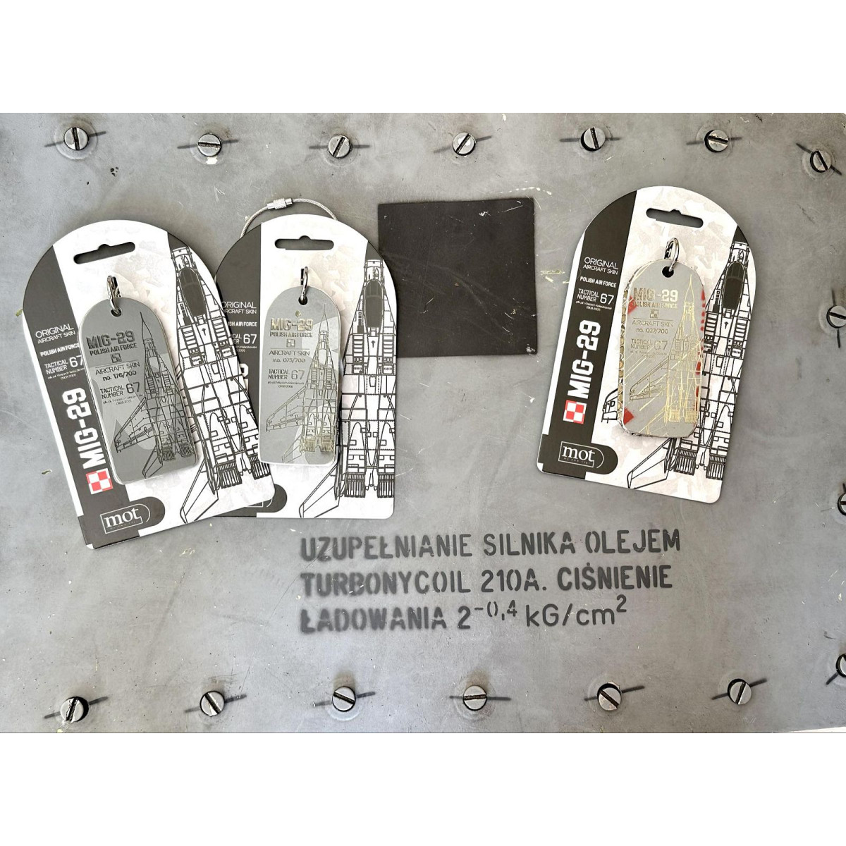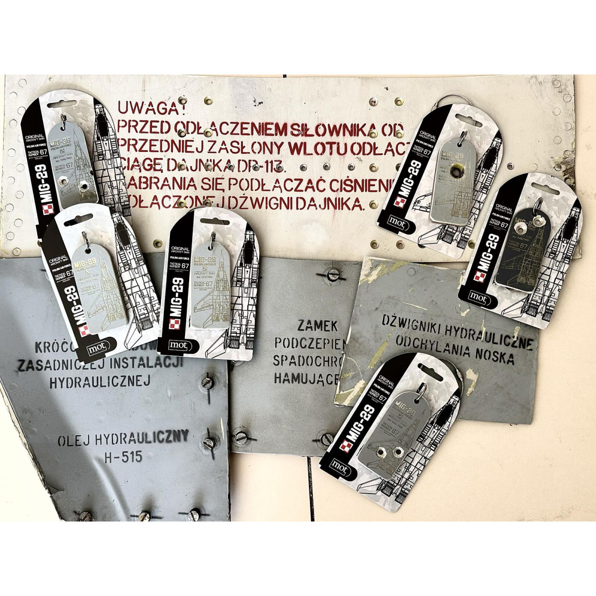 Tem MiG-29 latał w barwach Polskich Sił Powietrznych. Breloki wykonane są z elementów poszycia samolotu, głównie ze statecznika ogonowego, ale nie tylko. Każdy brelok jest inny. Lakier często posiada zarysowania eksploatacyjne. Breloki mogą mieć pozostałości po nitach lub śrubach. Niektóre są dwuwarstwowe, z elementami drewnianymi. Każda sztuka jest unikatowa i posiada swój numer.