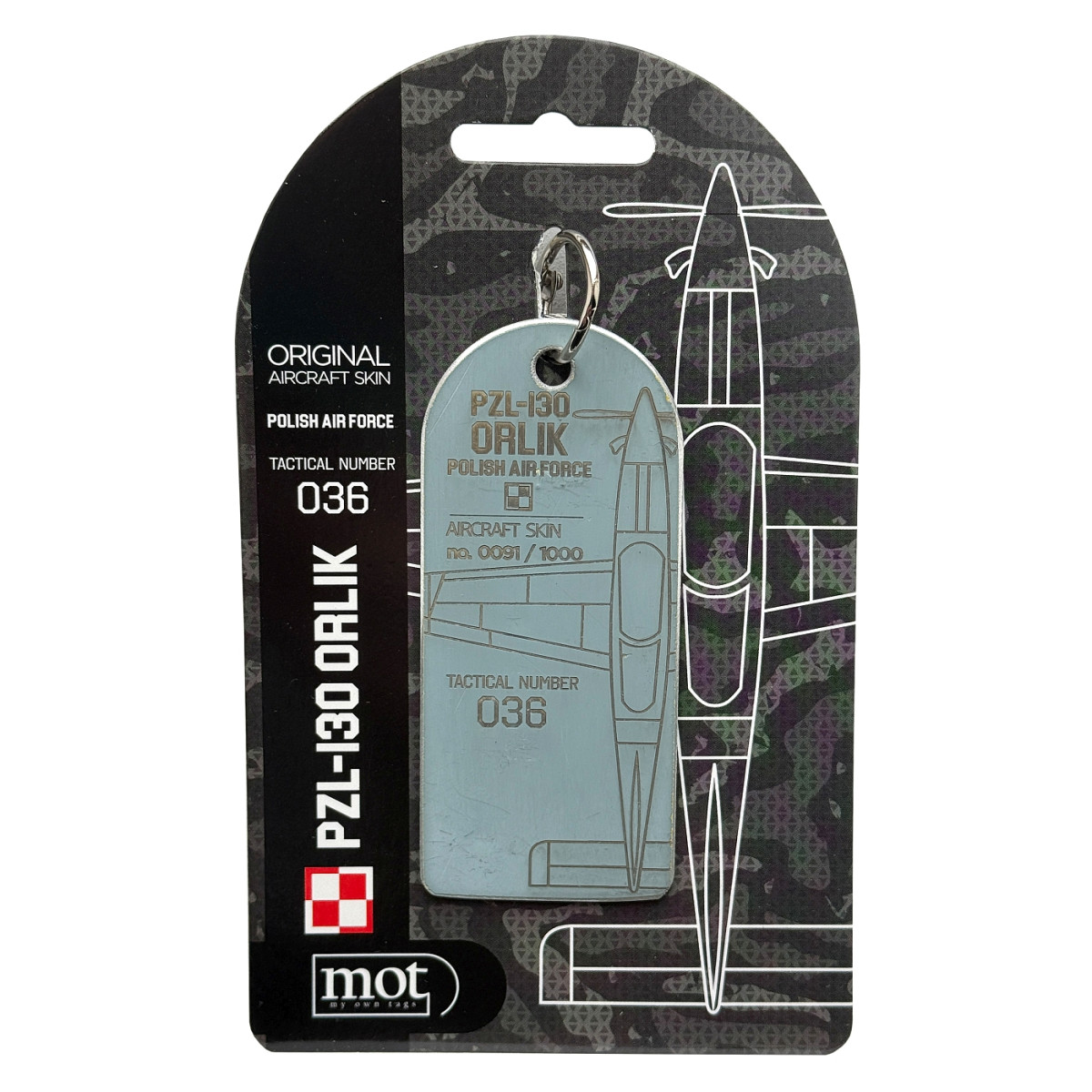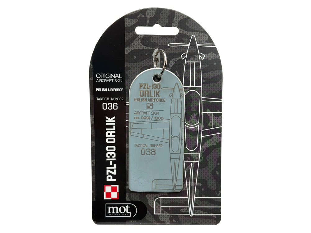 PZL-130 TCI Orlik nr boczny 036 wybudowany został w 1995 roku. Służył jako samolot treningowy do dnia 9 maja 2001 gdy w wyniku nieumiejętnego lądowania (wystąpiły siły przeciążenia g+6) poważnie została naruszona konstrukcja tego statku powietrznego. 036 nie został spisany ze stanu a odstawiony do remontu w przyszłości. Taka możliwość pojawiła się dopiero po kilkunastu latach w momencie gdy podjęto decyzję że zostanie przebudowany na model PZL-130 TCII Advanced. Obecnie PZL-130 Orlik nr boczny 036 jest nadal w służbie Sił Powietrznych, a breloki pochodzącą z rozmontowanych elementów.