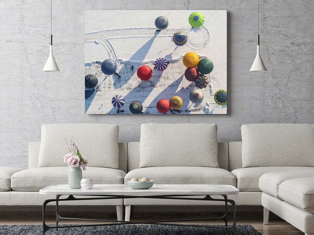 Obraz Balony na śniegu wydrukowany na płótnie typu canvas i naciągnięty na drewnianą ramę.
