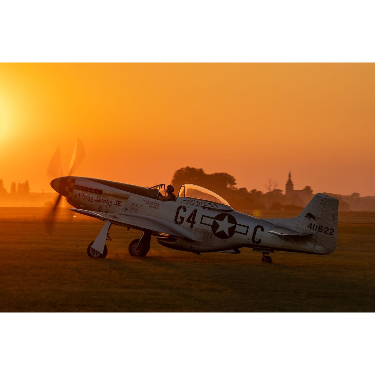Foto Obraz P-51 Mustang wydrukowany na płótnie typu canvas i naciągnięty na drewnianą ramę.