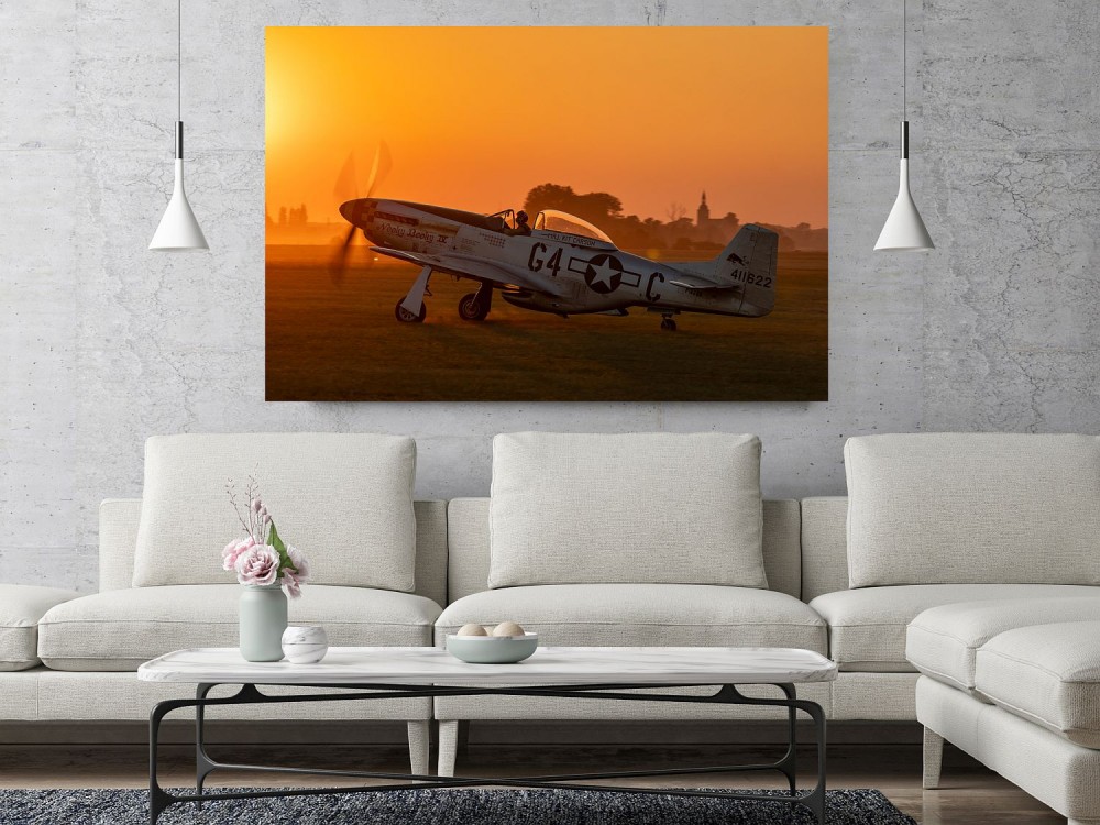 Obraz z P-51 Mustanga wydrukowany na płótnie typu canvas i naciągnięty na drewnianą ramę.