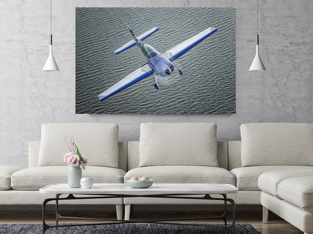 Foto obraz z samolotem akrobacyjnym Extra 300L, za sterami Bartek Pyzik, wydrukowany na płótnie typu canvas i naciągnięty na drewnianą ramę.