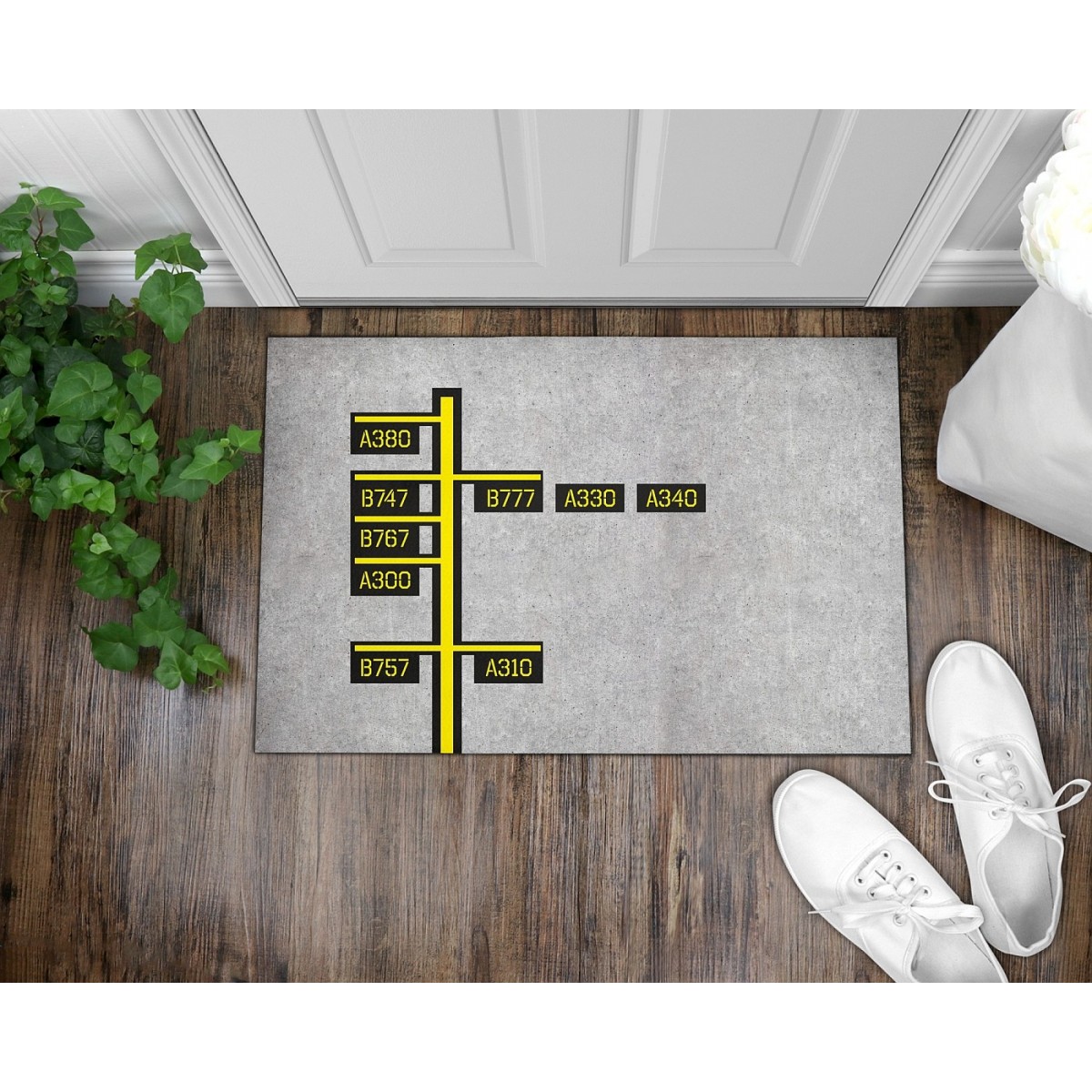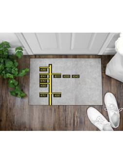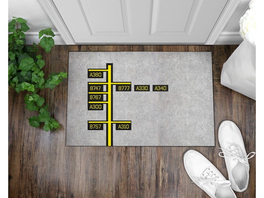 Dywanik pod drzwi z motywem lotniczym. Dostępne dwa rozmiary 90x60 cm lub 75x45 cm. Nadruk sublimacyjny odporny na ścieranie. Spodnia strona wykonana jest z gumy antypoślizgowej.